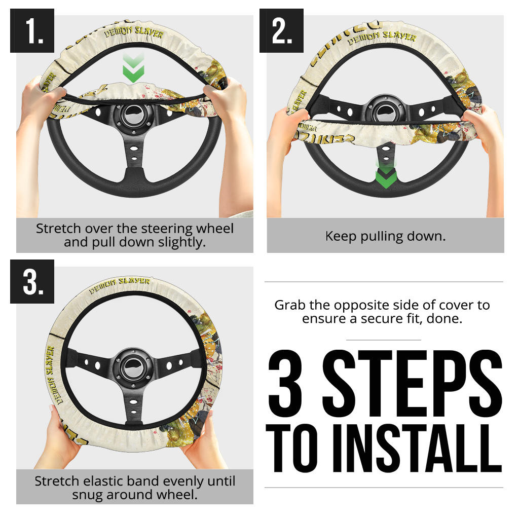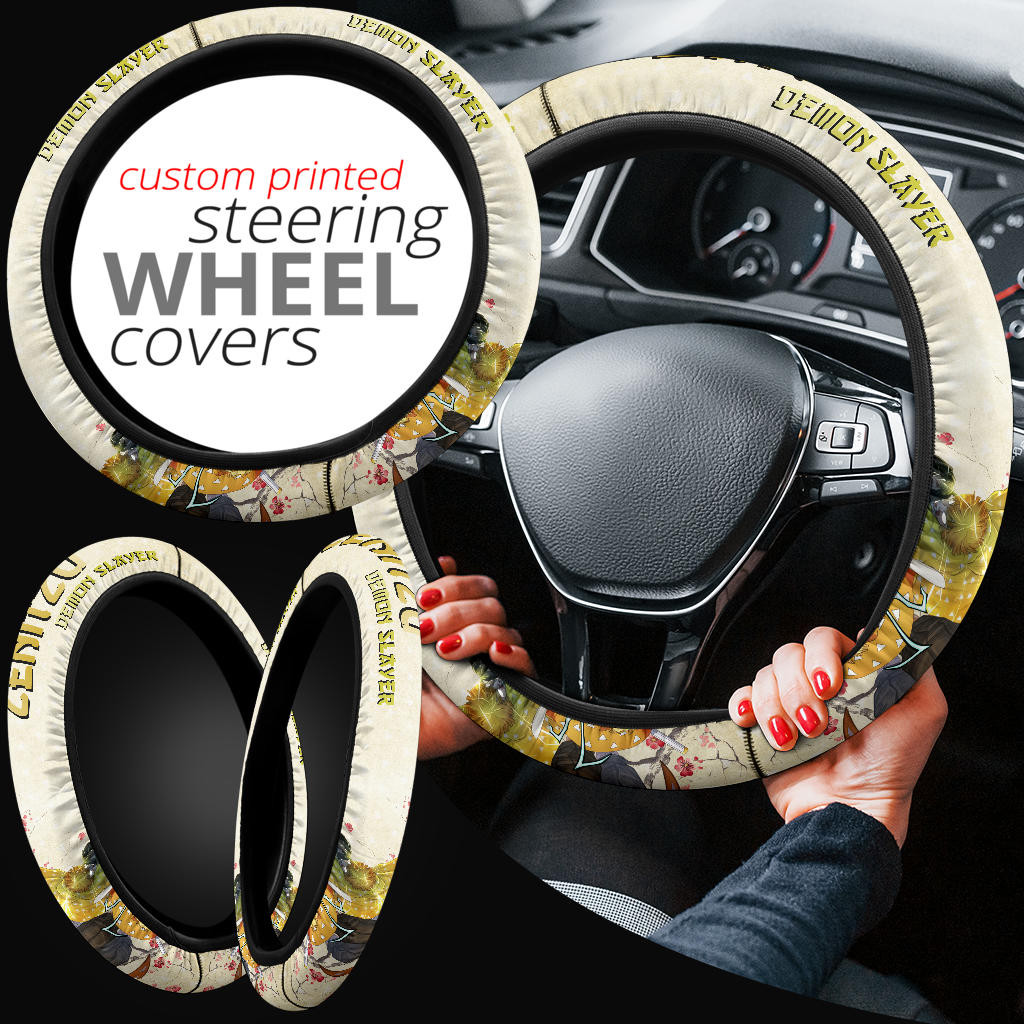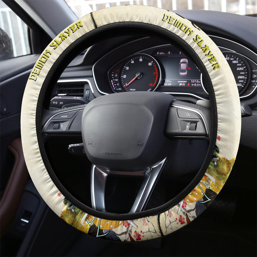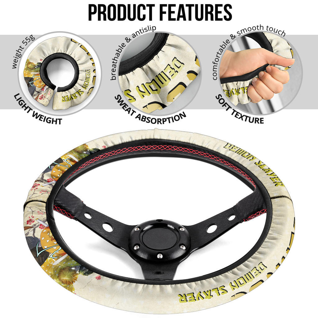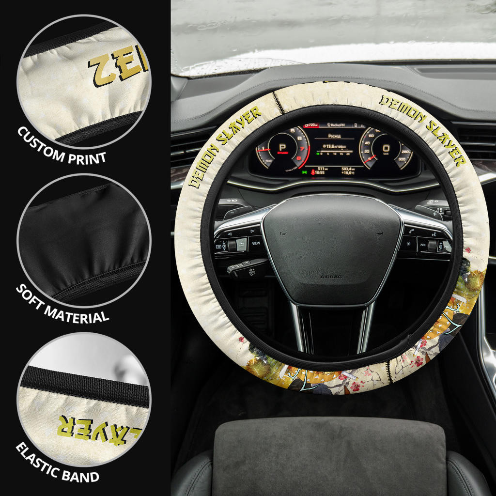 Demon Slayer Zenitsu Lightning Breath Power Fighting Moments Steering Wheel Cover