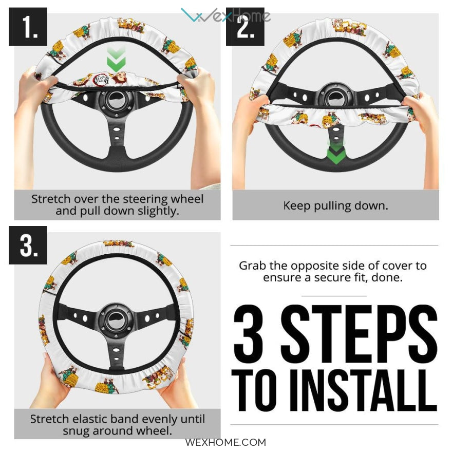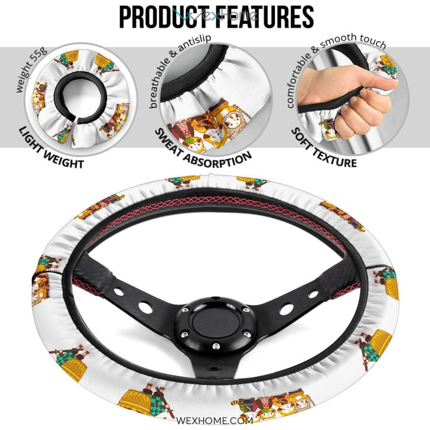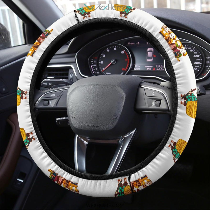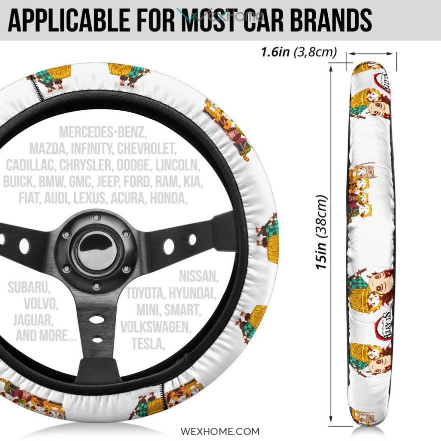 • Steering Wheel Cover - Demon Slayers Anime Steering Wheel Cover | Chibi Tanjiro Carry Rascal Racoon Steering Wheel Cover NA051202