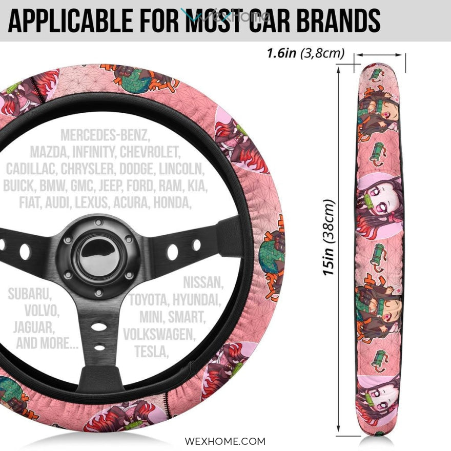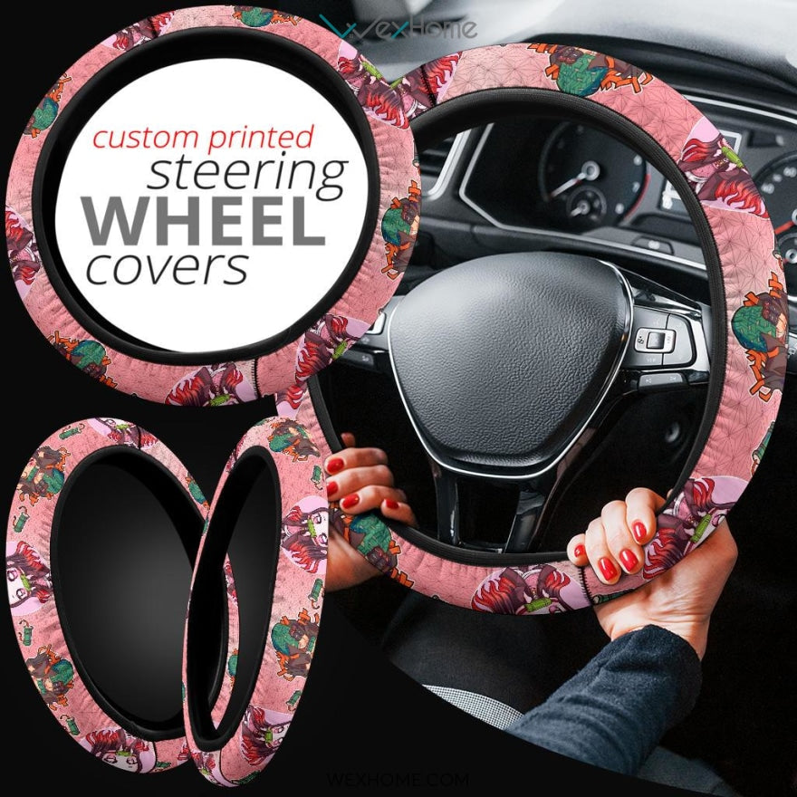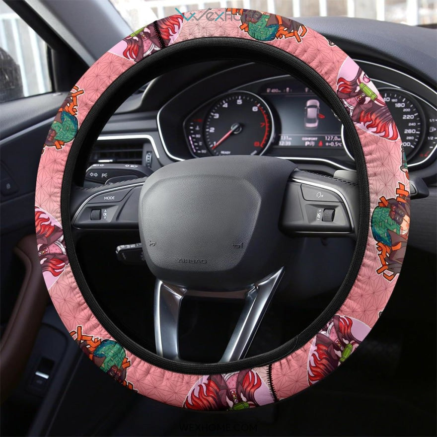 Style: Steering Wheel Cover - Demon Slayers Anime Steering Wheel Cover | Nezuko Moments Pink Steering Wheel Cover NA051206