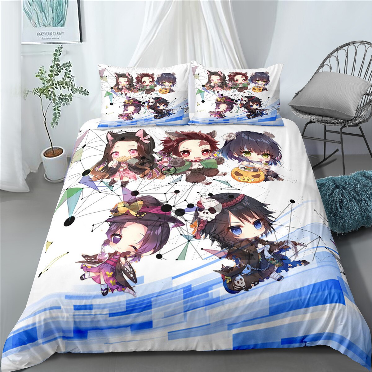 Devil’S Blade Anime Peripheral Duvet Cover Pillow Case Demon Slayer Kimetsu No Yaiba Tanjirou Kawaii Anime Bedding Home Textile