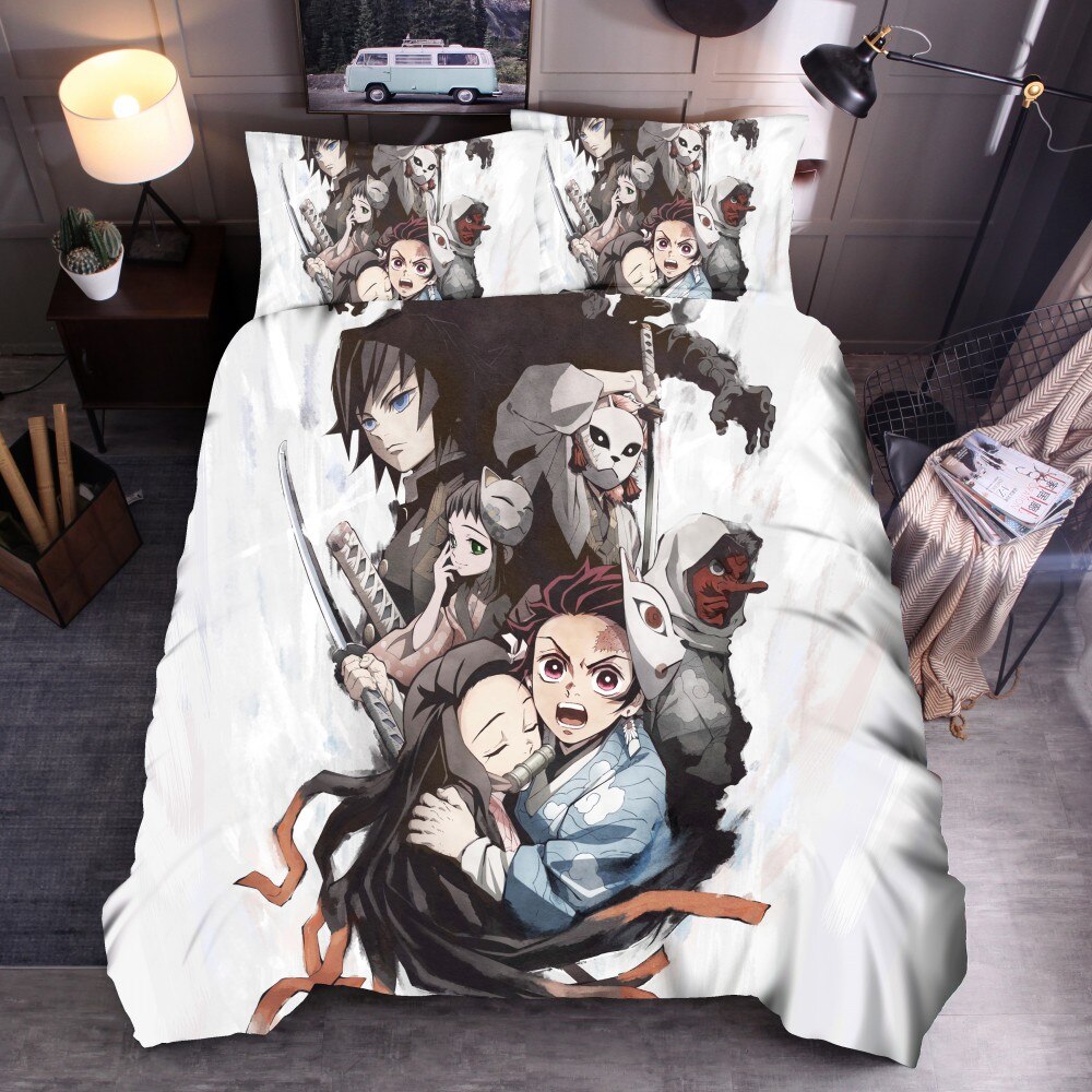Devil’S Blade Anime Pillow Case Demon Slayer Kimetsu No Yaiba Pillowcase Duvet Cover Set Bedding