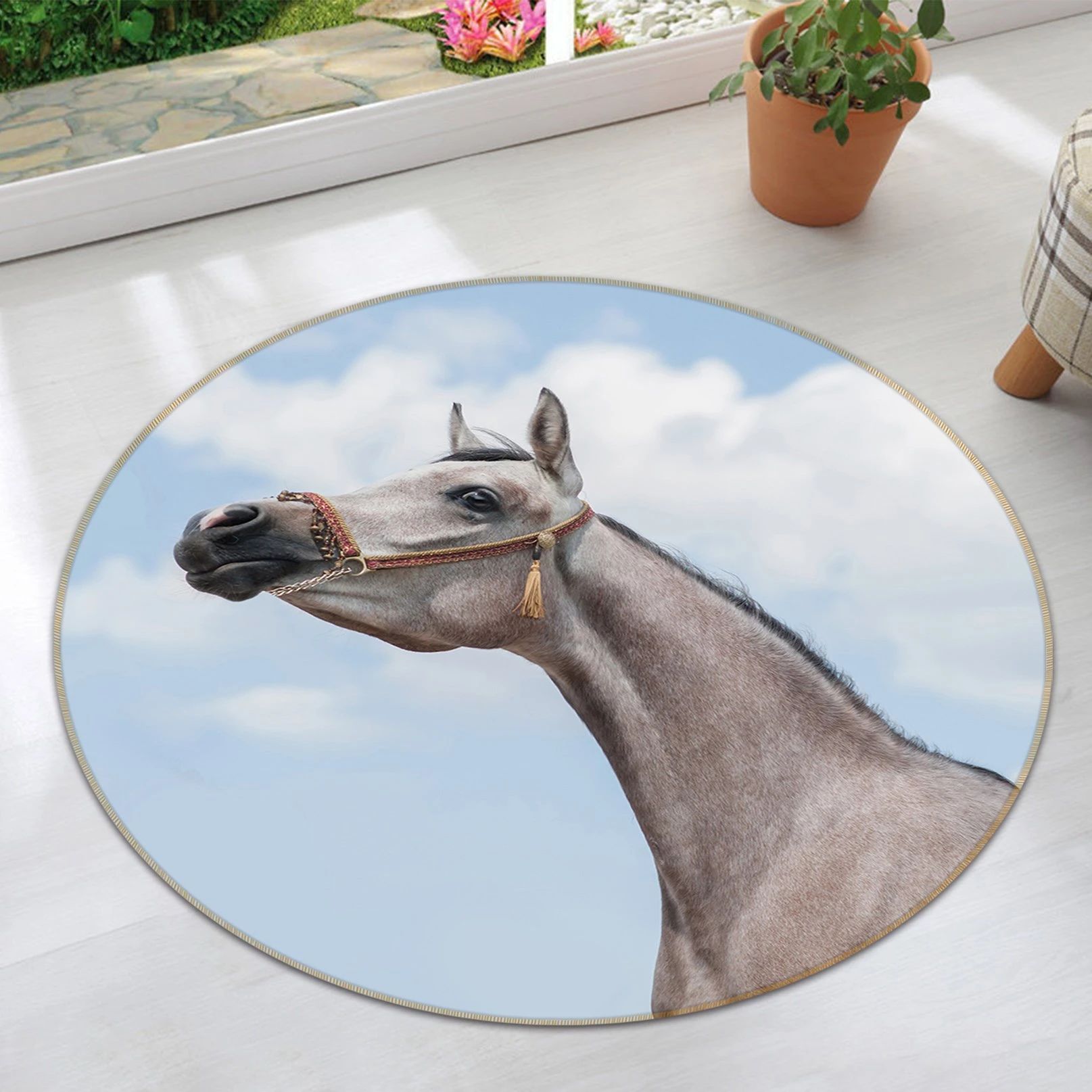 Distressed Eyes Horse Blue Sky Printed Round Rug – Round Carpet Home Decor