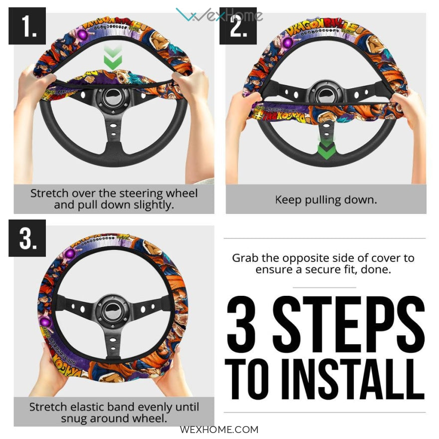 Style: Steering Wheel Cover - Dragon Ball Anime Steering Wheel Cover | DB Goku Purple Power Fighting Moments Steering Wheel Cover NA072001