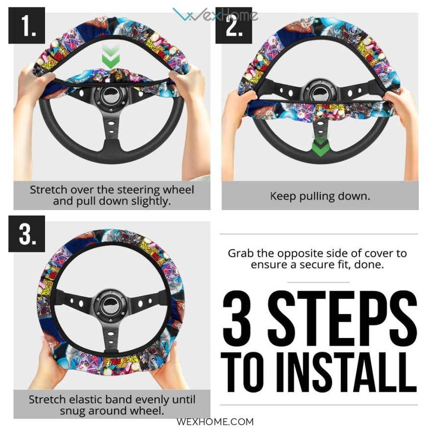 Style: Steering Wheel Cover - Dragon Ball Anime Steering Wheel Cover | Goku Blue Super Power Team Steering Wheel Cover NA062303
