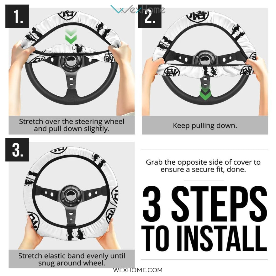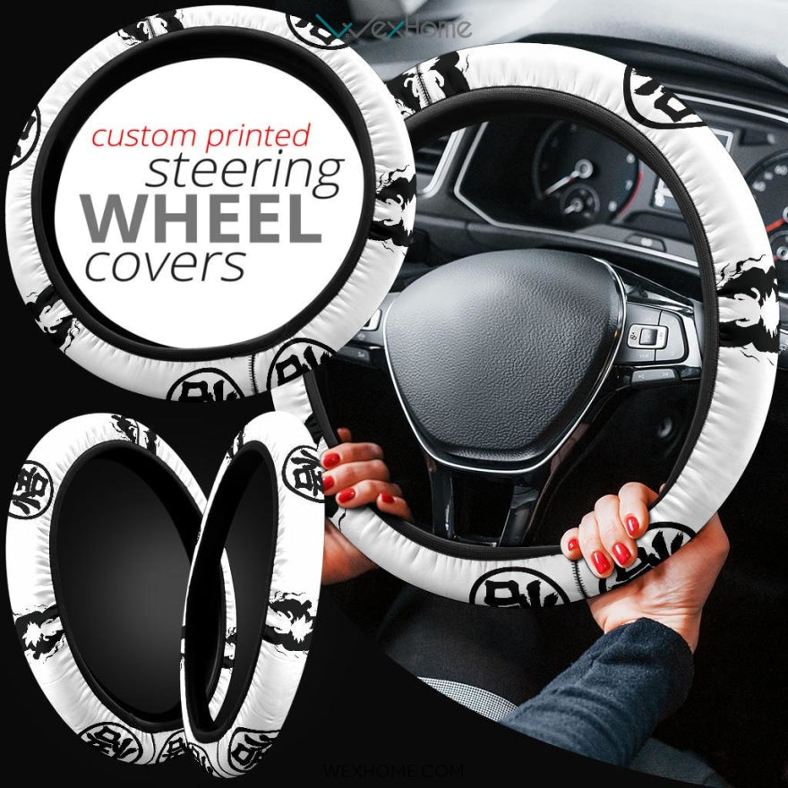 Dragon Ball Anime Steering Wheel Cover | Goku Silhouette Black White Steering Wheel Cover