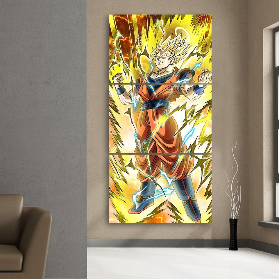 Dragon Ball Goku Powerful Aura Fan Art 3Pc Canvas Print