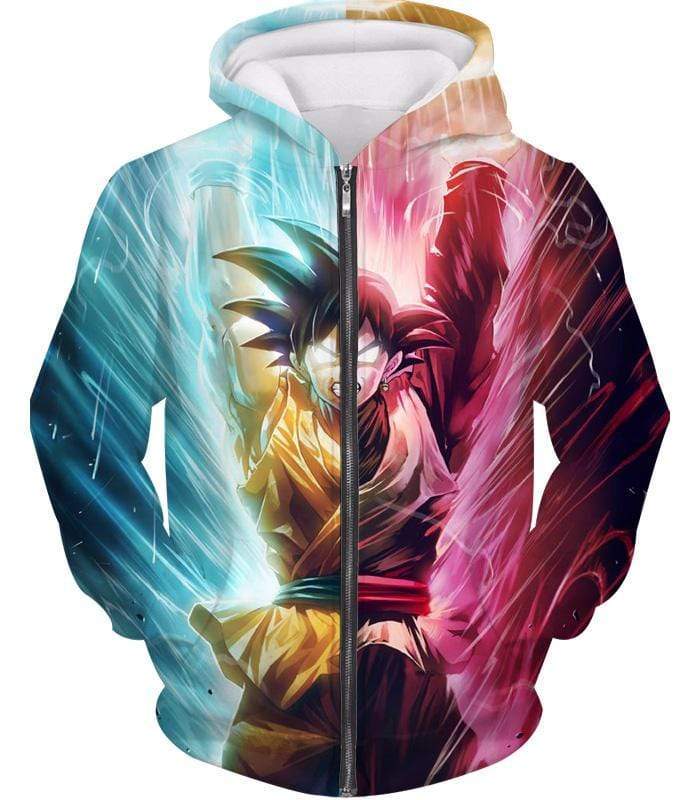 Dragon Ball Z Hoodie – Half Black Goku Half Goku Spirit Bomb