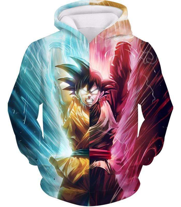 Dragon Ball Z Zip Up Hoodie – Half Black Goku Half Goku Spirit Bomb