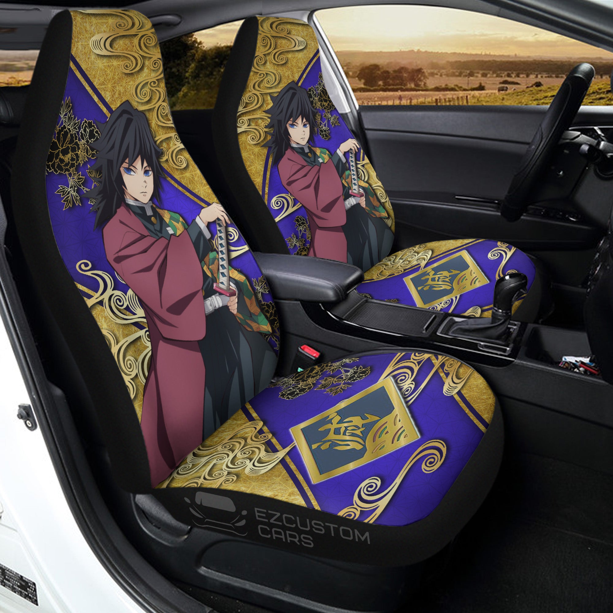 Giyu Tomioka Car Seat Covers Demon Slayer Anime Car Accessories