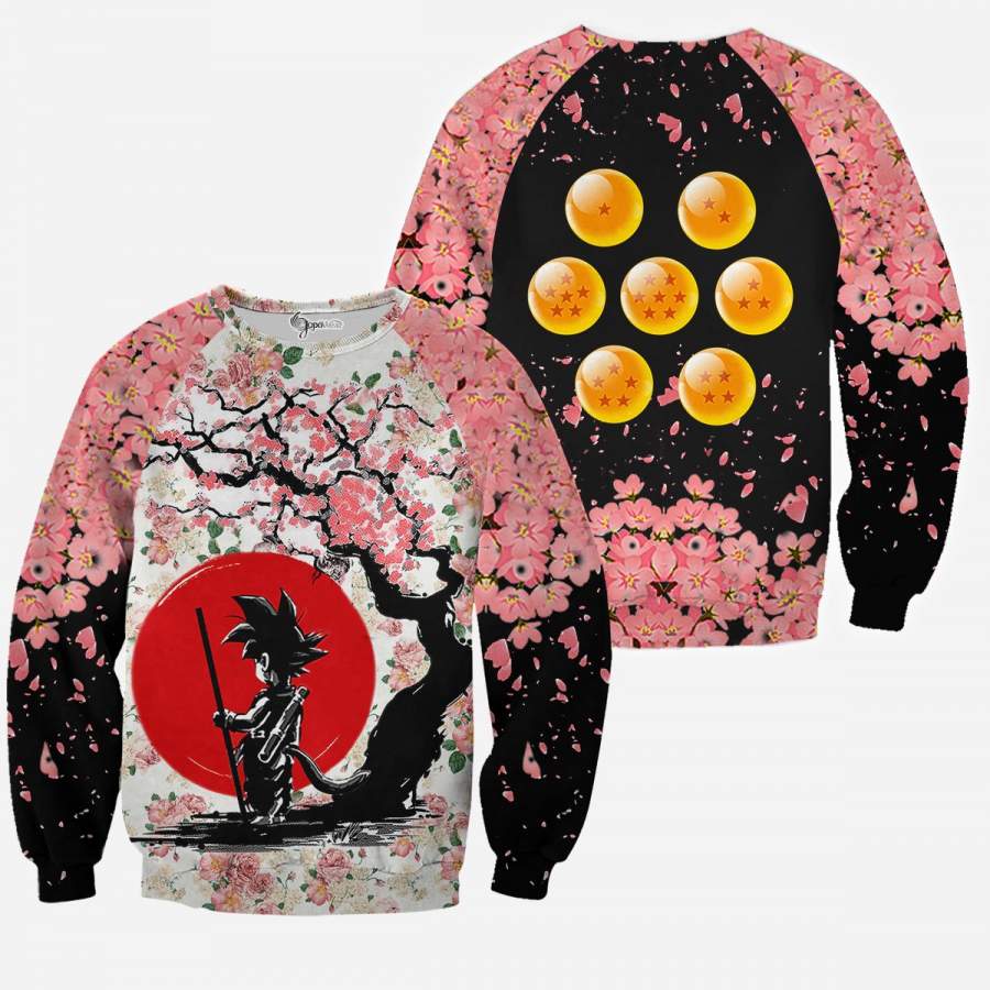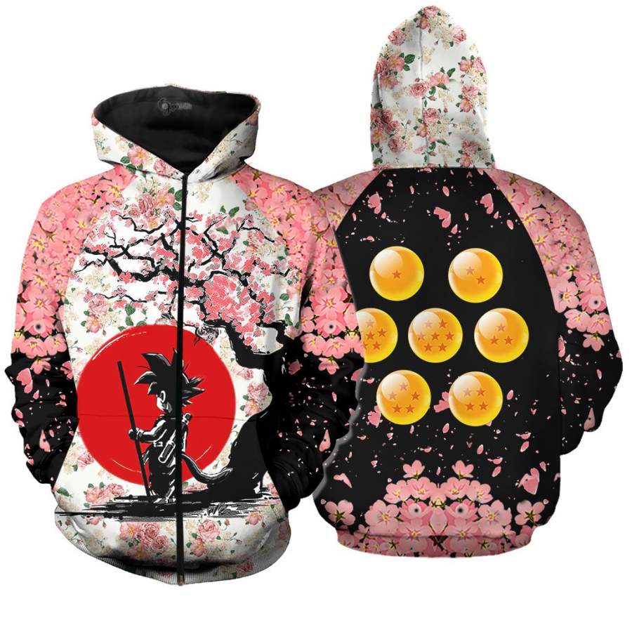 Goku Sakura Floral Raglan 3D All Over Printed Shirts