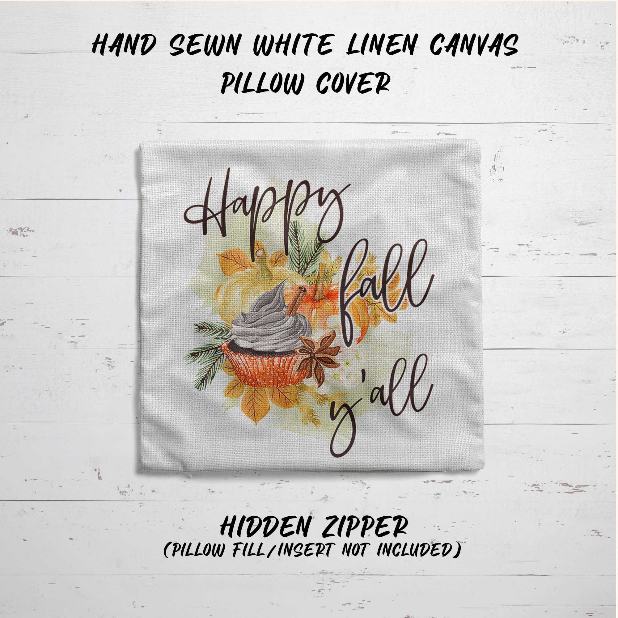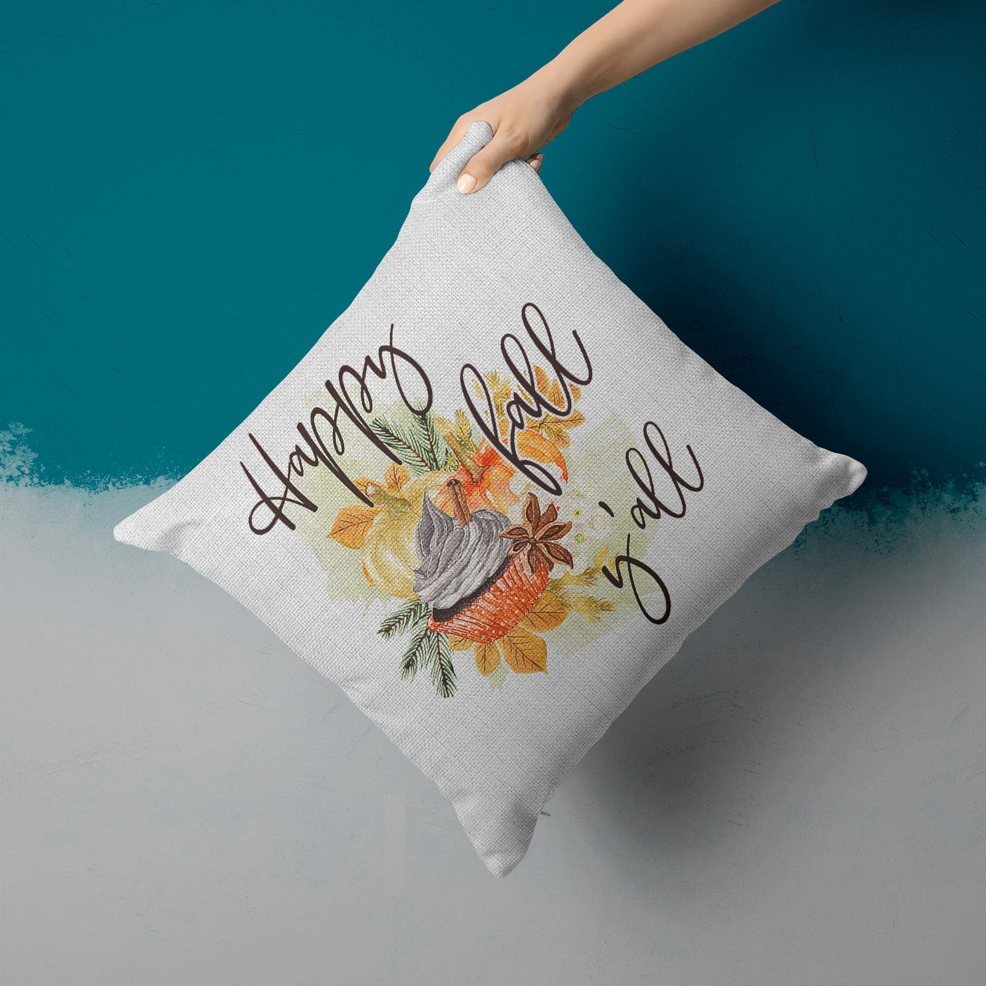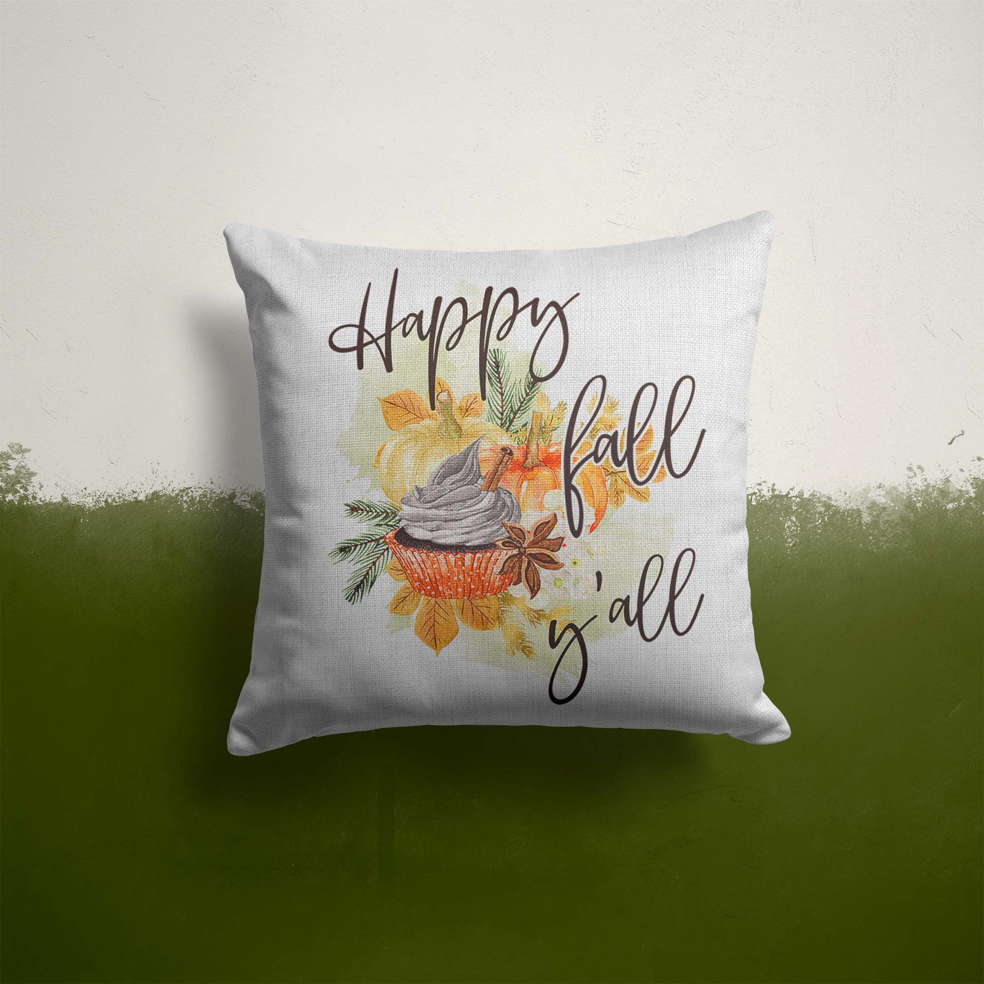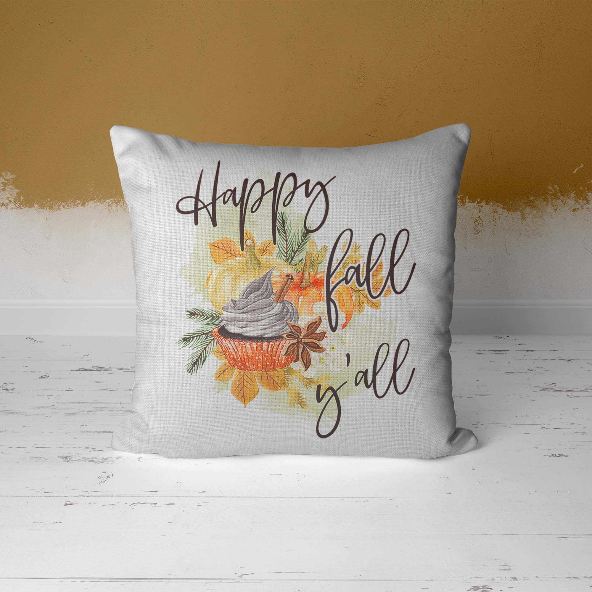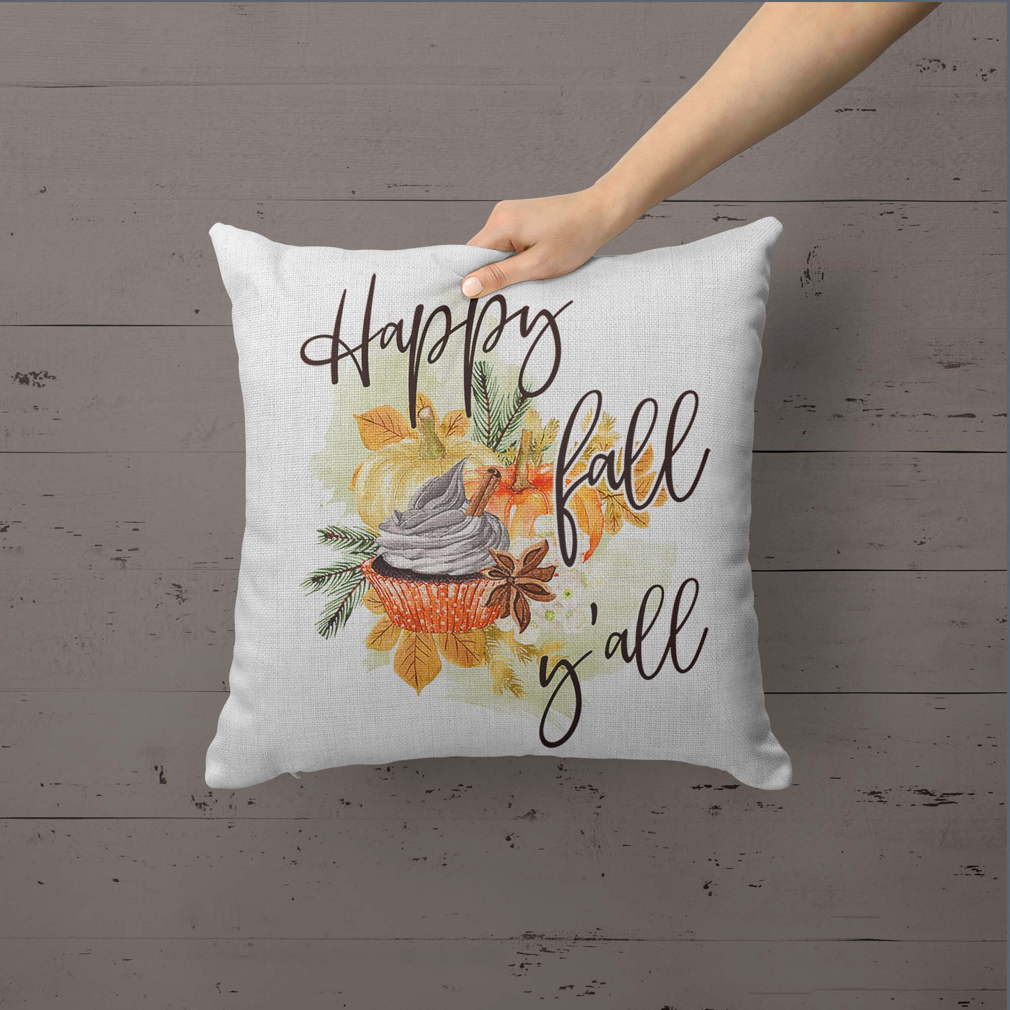 Happy Fall Yall Pillow Cover Fall Throw Pillow Case Watercolor Pumpkin Home Decor Latte Square Pumpkin Spice 15” Square