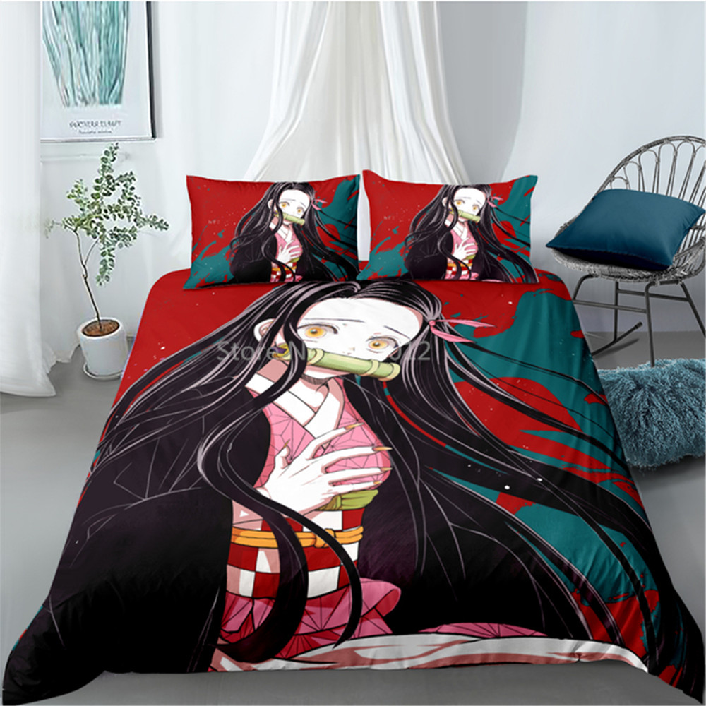 Japan Anime 3D Bedding Set Demon Slayer Nezuko Kamado Duvet Cover With Pillowcasee Cutedouble King Size