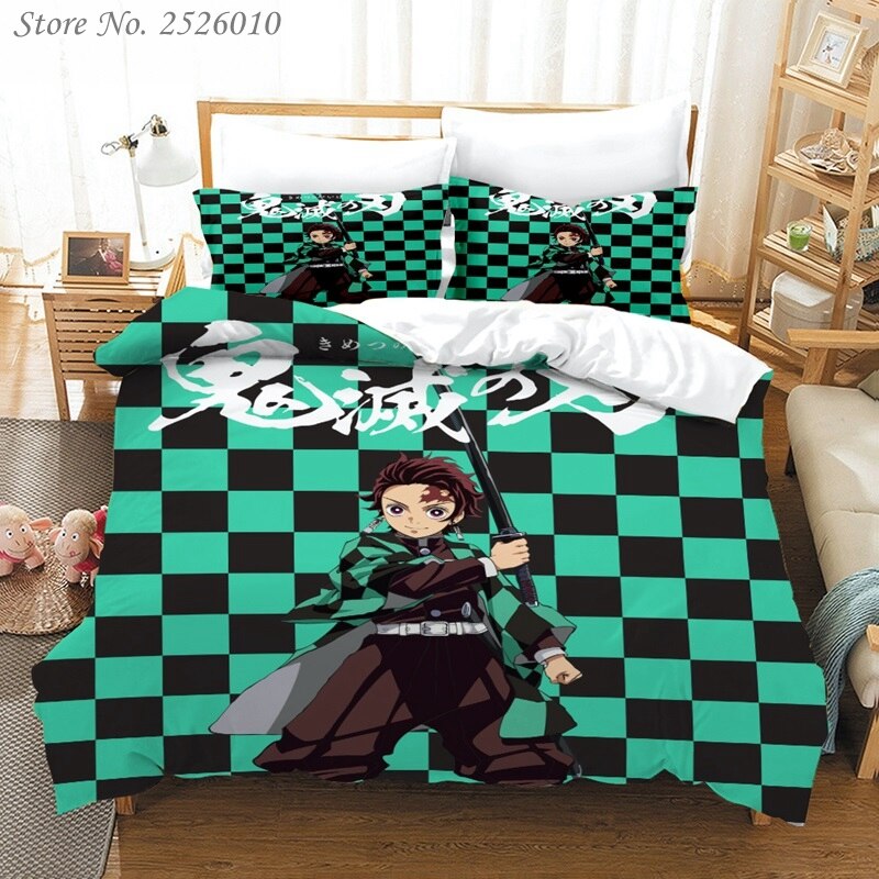 Japan Anime Demon Slayer 3D Bedding Set Children Character Printed Duvet Cover Set Bed Linens Twin Full Queen King 01