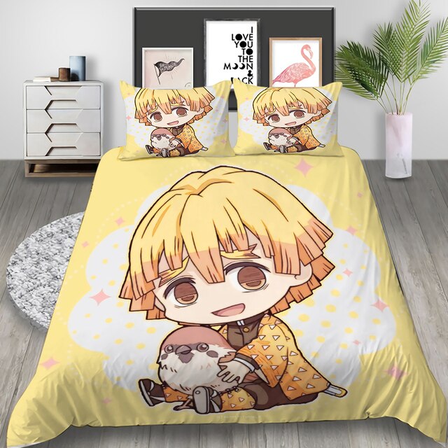 Japan Anime Demon Slayer 3D Bedding Set Children Character Printed Duvet Cover Set Bed Linens Twin Full Queen King 04