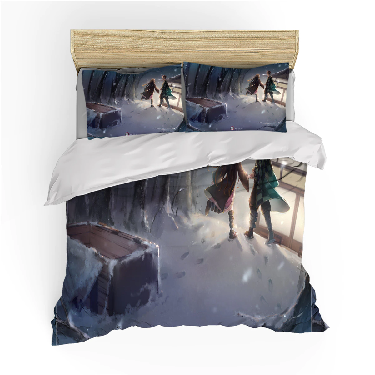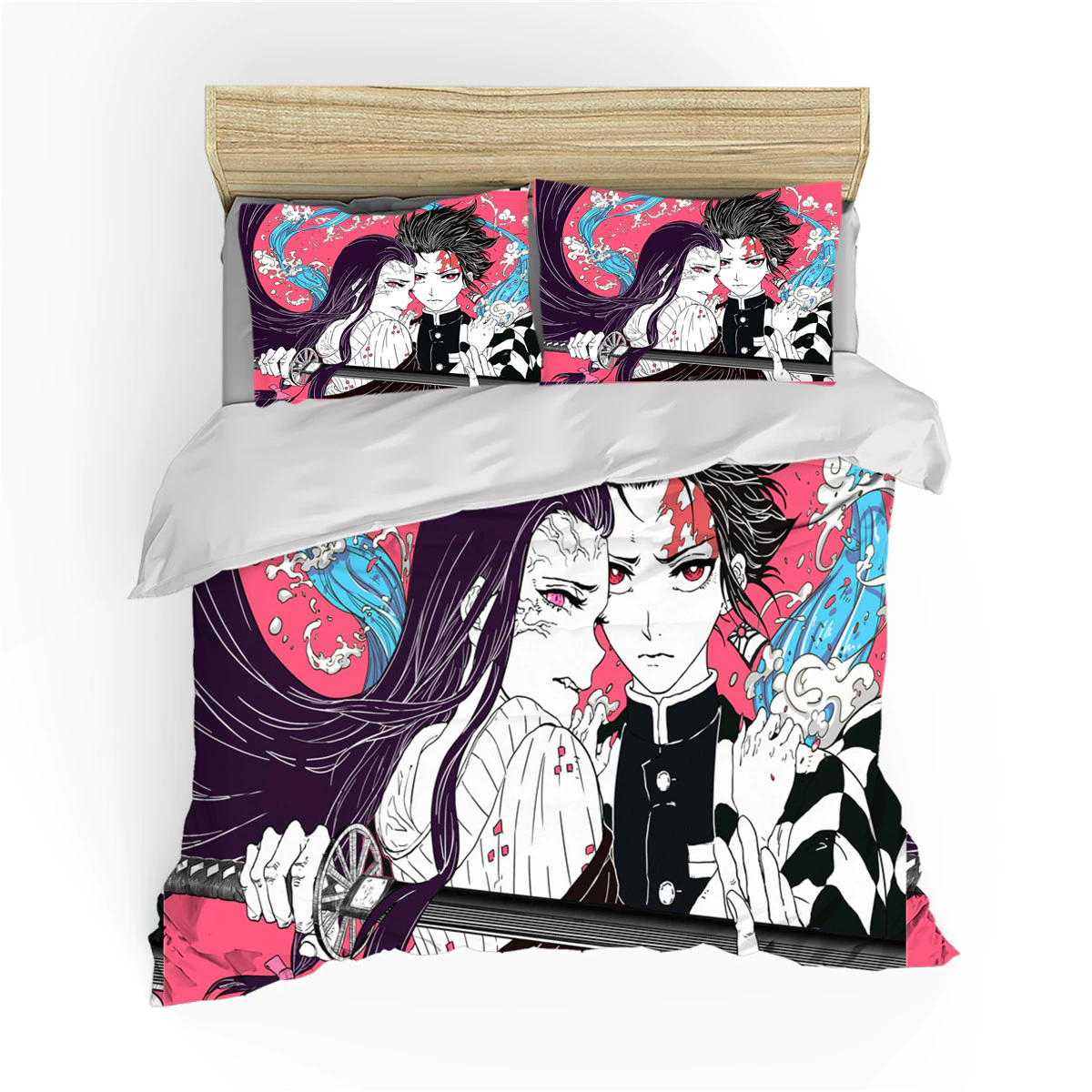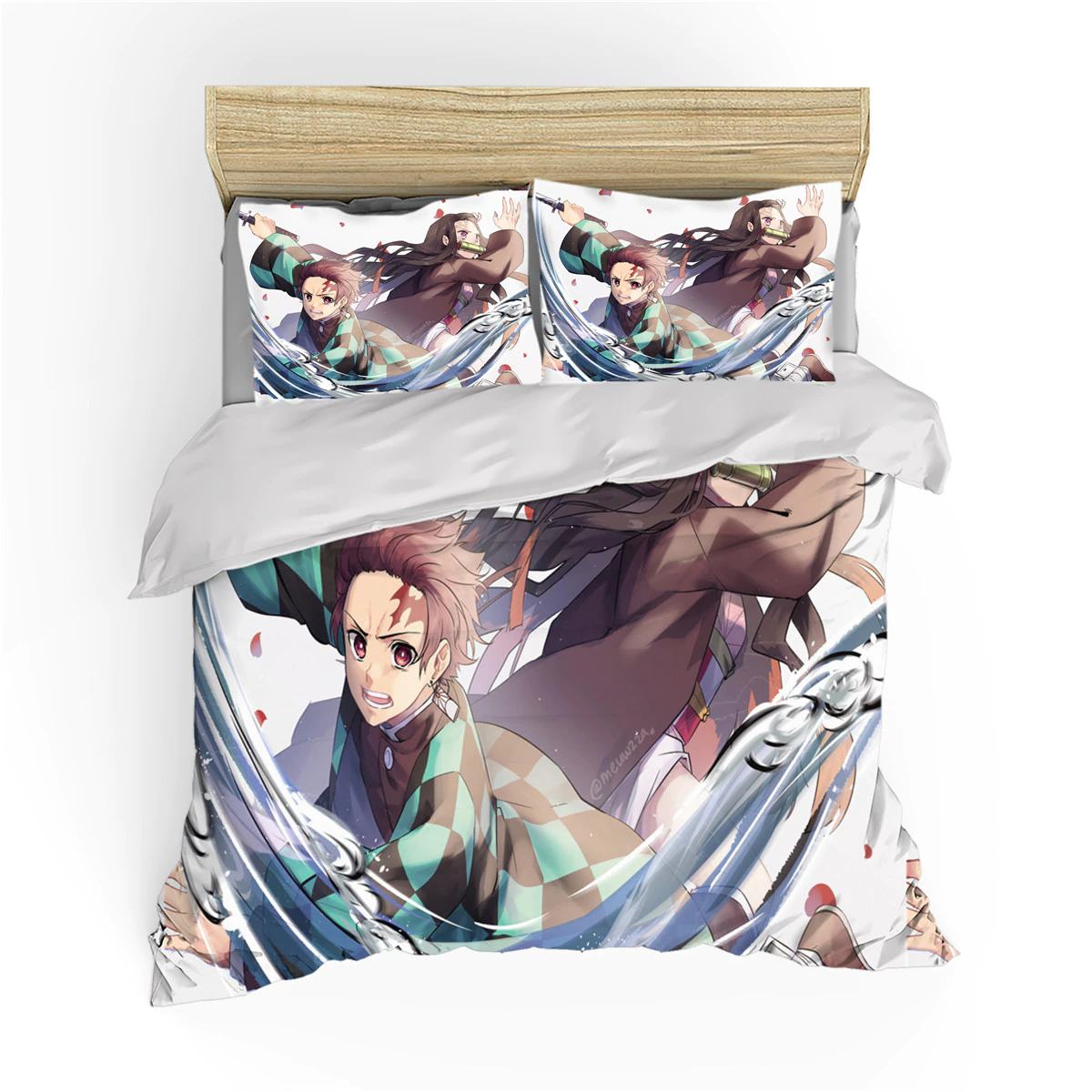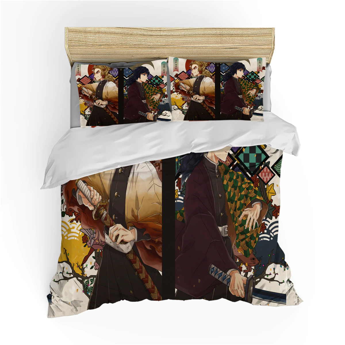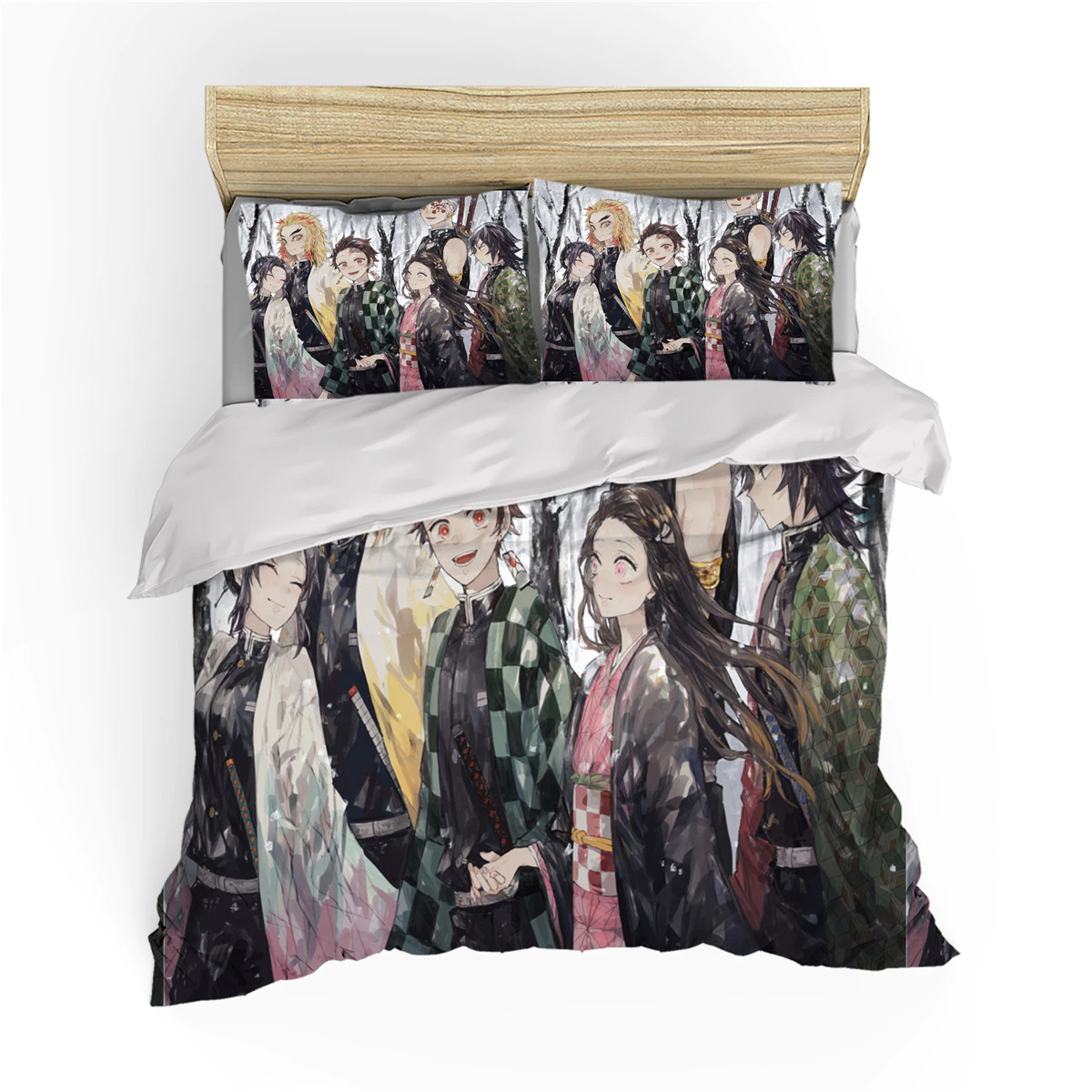 Japan Demon Slayer Bedding Set Cartoon Anima Lovers Duvet Cover For Adults Single Size Bed Set Children Pillowcases