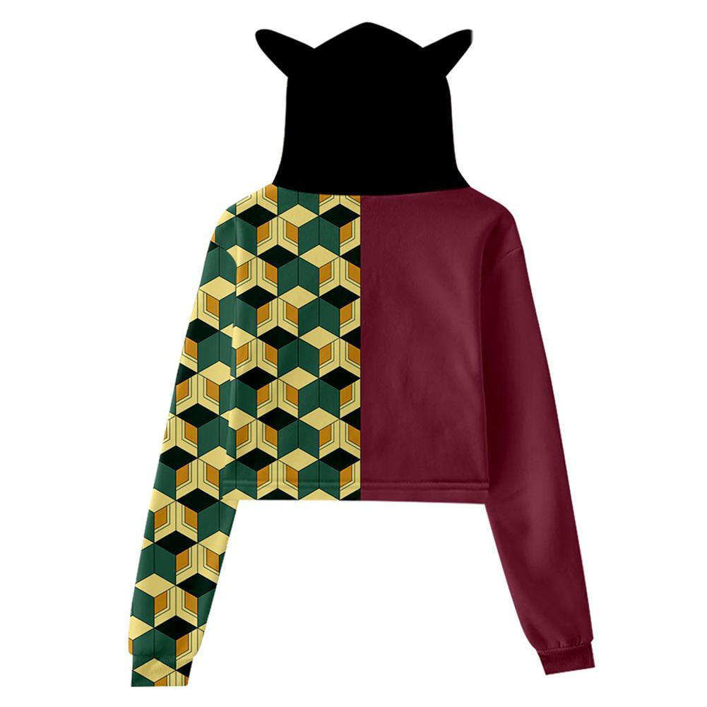 Kids Demon Slayer: Kimetsu No Yaiba Cat Ear Drawstring Hoodies Tomioka Giyuu Cosplay Pullover Crop Tops