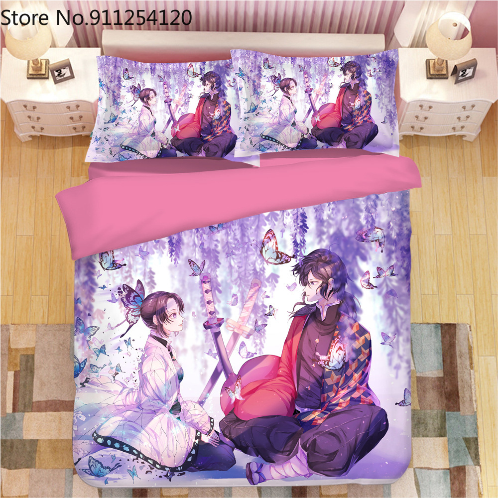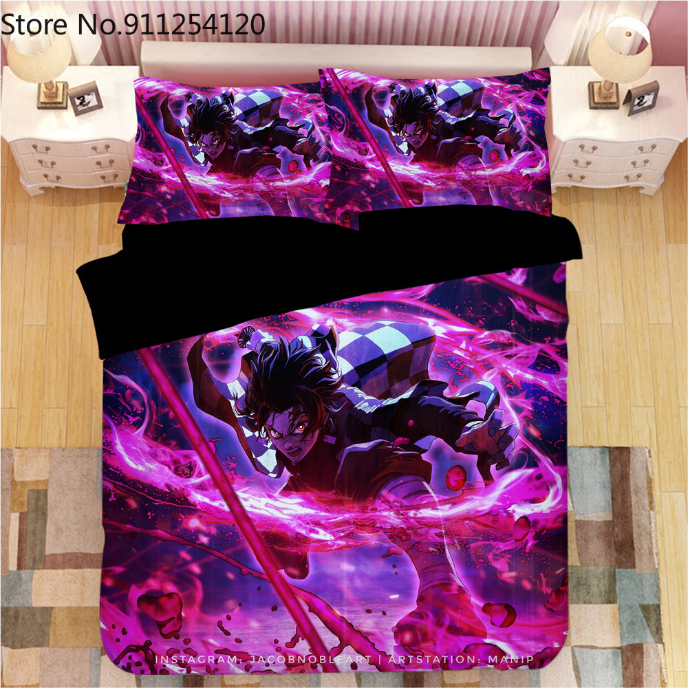 Kimetsu No Yaiba 3D Print Demon Slayer Bed Cover Cartoon Anime Duvet Covers Pillowcases Anime Bedding Sets