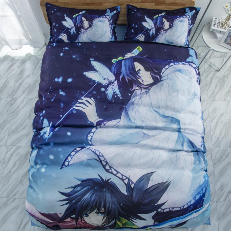 Kimetsu No Yaiba 3D Print Demon Slayer Bed Linen Cartoon Anime Duvet Covers Pillowcases Kids Anime Bedding Sets 03