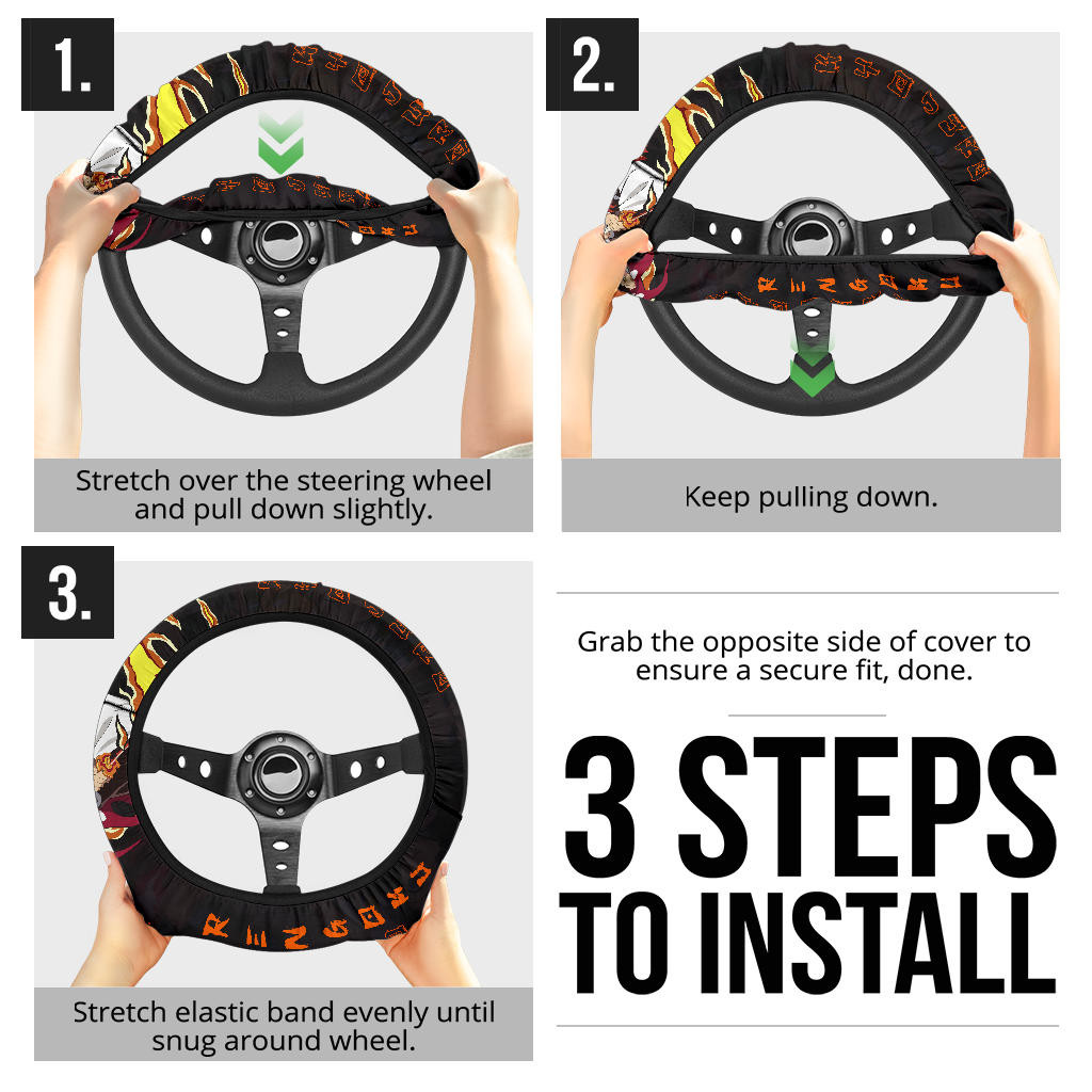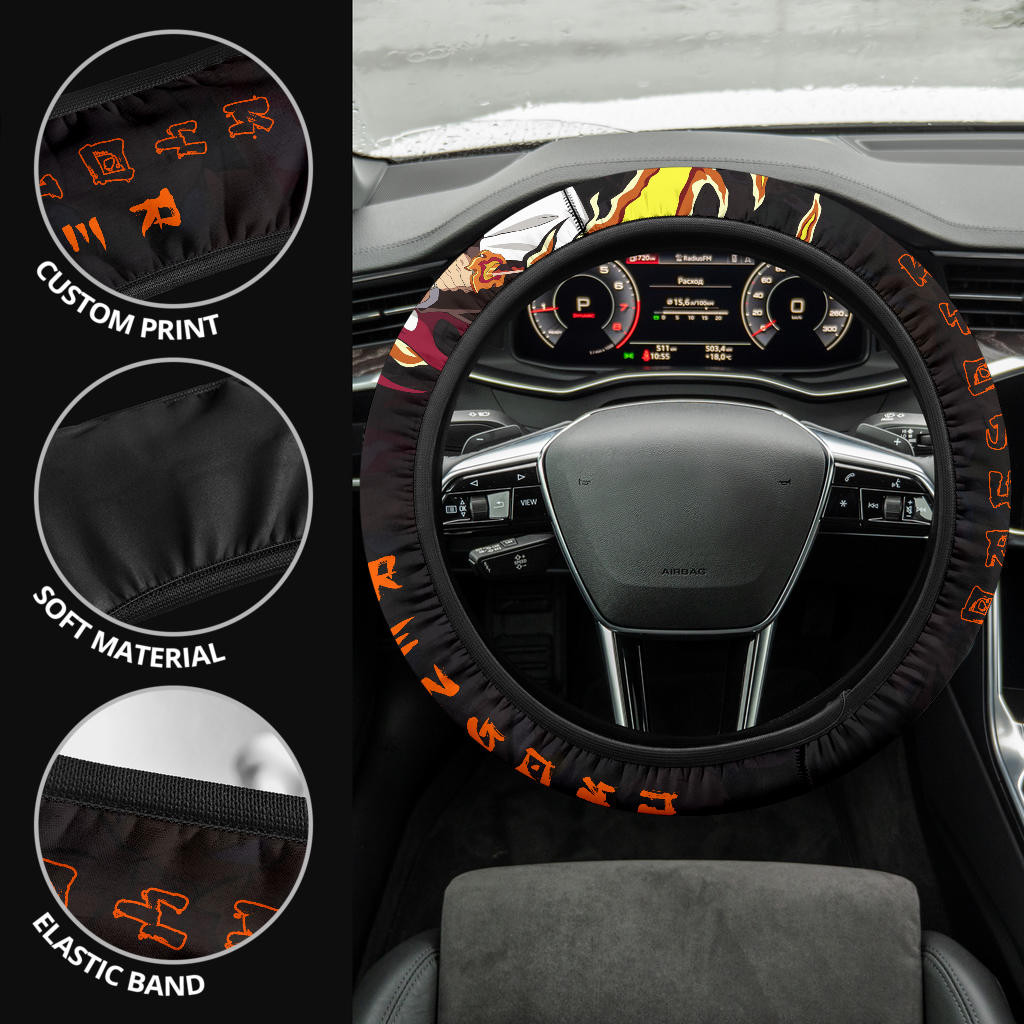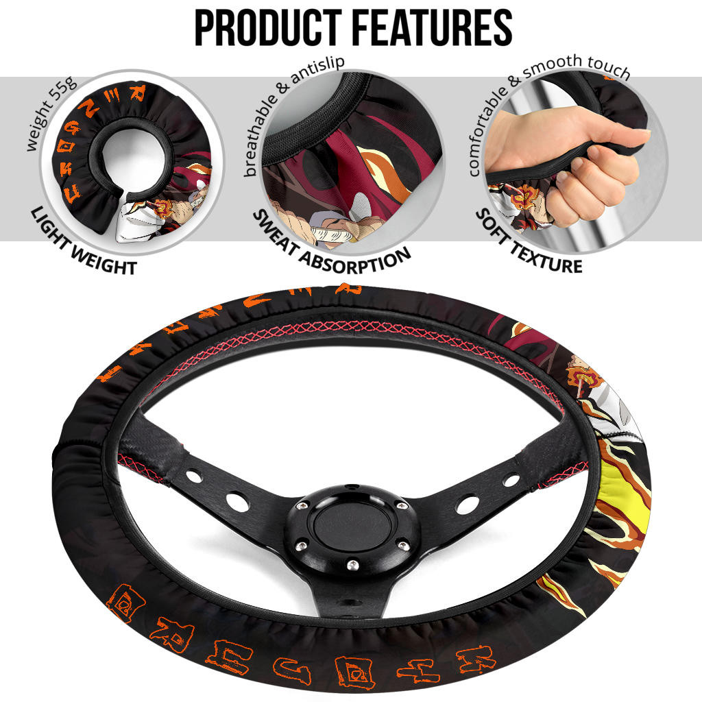Kyojuro Rengoku Demon Slayer Steering Wheel Cover Anime Car Accessories Custom For Fans Na030701