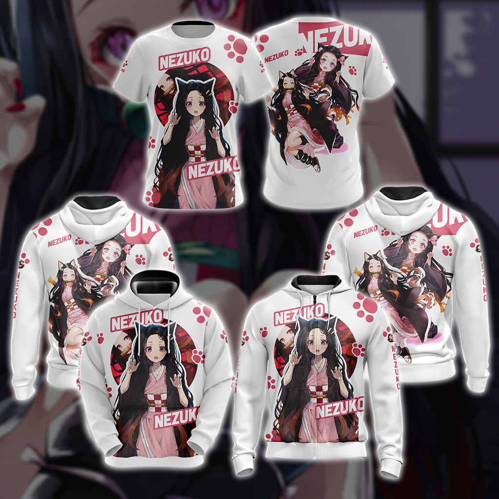 Nezuko Demon Slayer All Over Print T-Shirt Zip Hoodie Pullover Hoodie