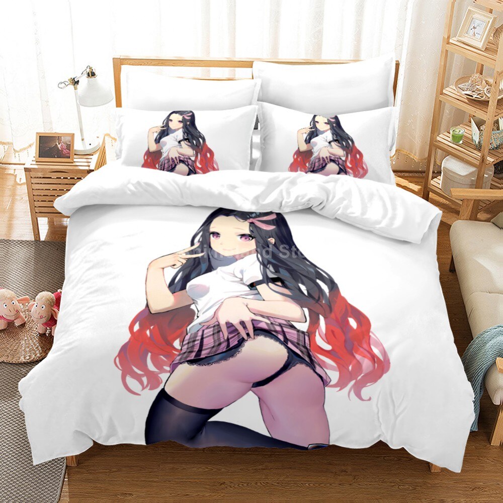 Nezuko Kamado Bedding Set Demon Slayer 3D Duvet Cover Sets Pillowcasee Bedclothes Cartoon Queen King Size Anime