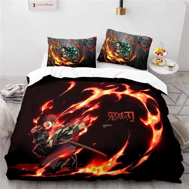 Popular Anime Demon Slayer 3D Bedding Set Kamado Tanjirou Kamado Nezuko Character Duvet Cover Set Pillowcase Cartoon Bed Sets