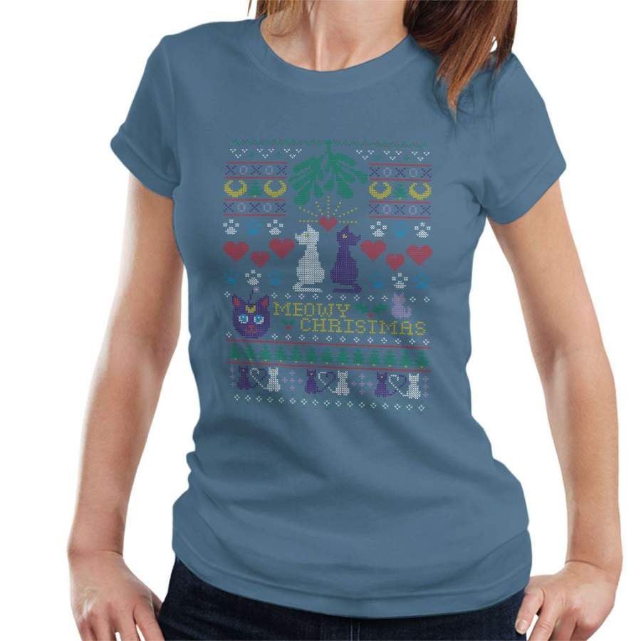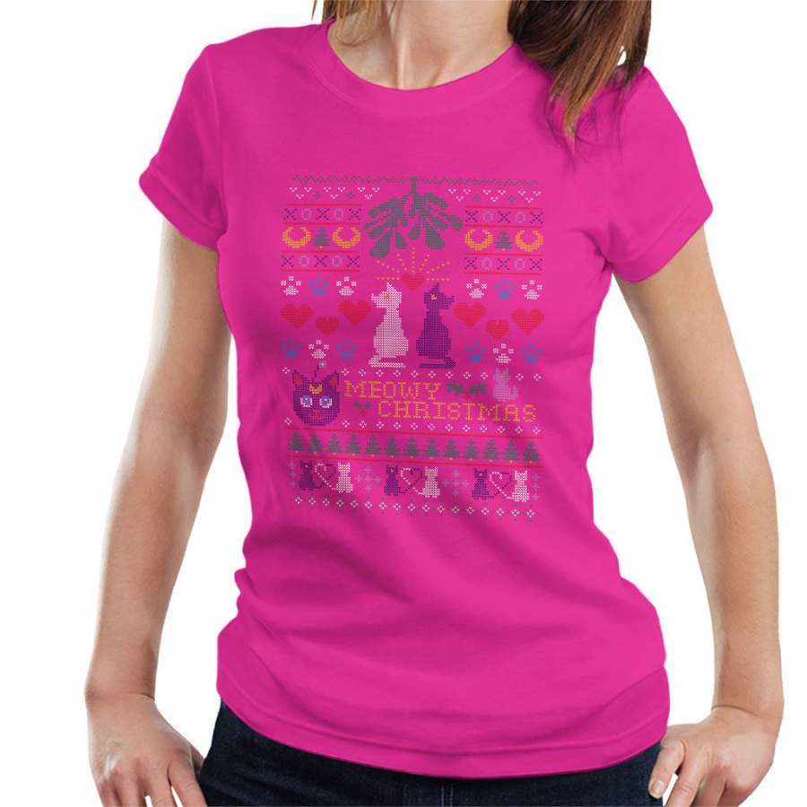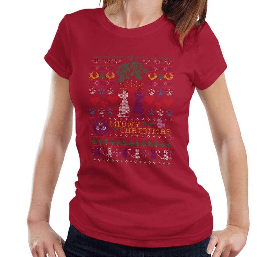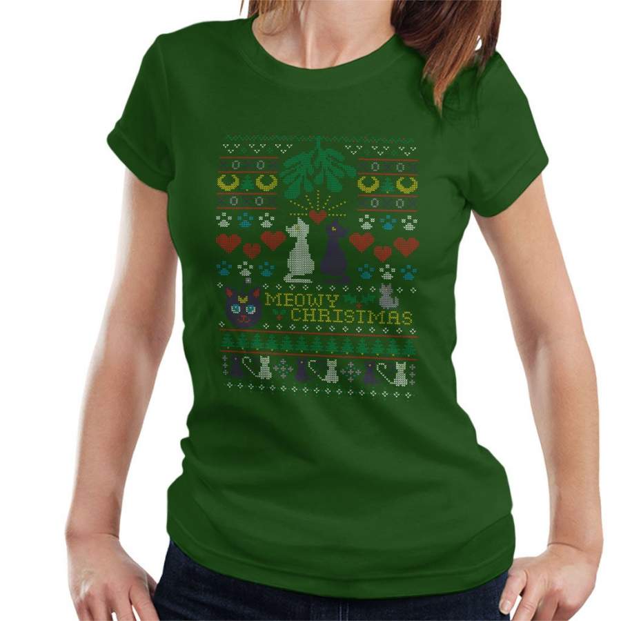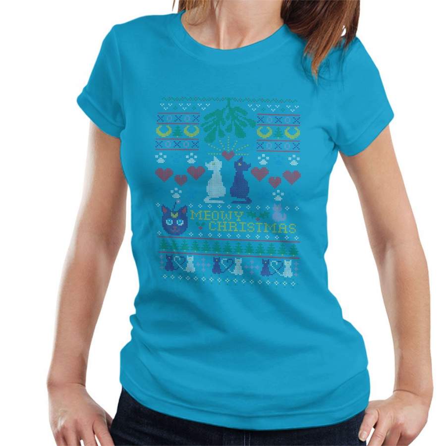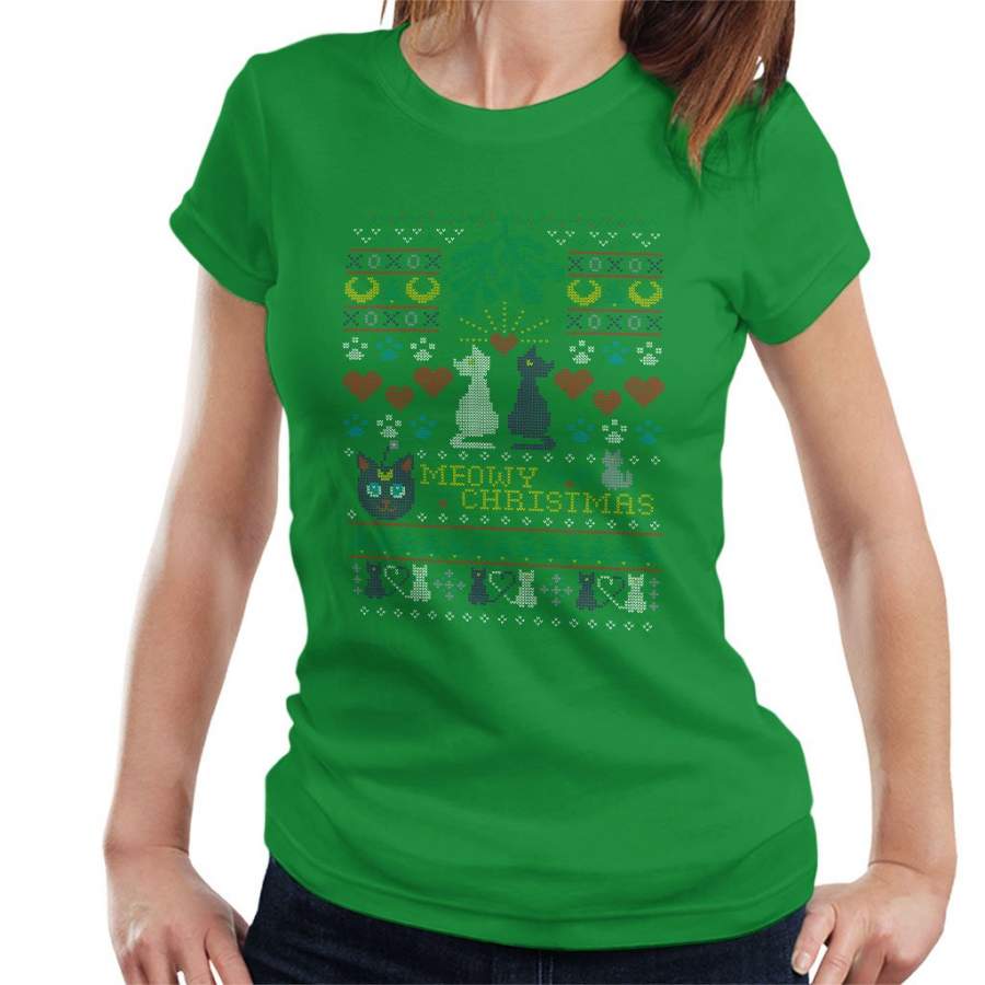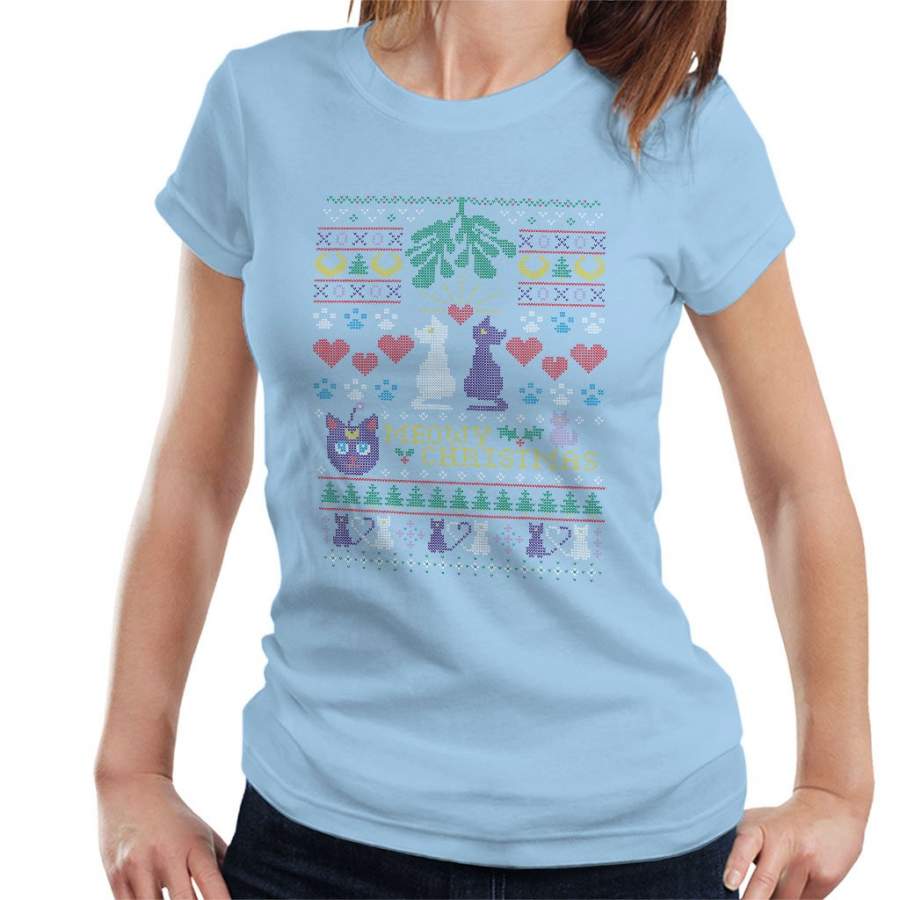 Sailor Moon Luna And Artemis Cats Meowy Christmas Women’s T-Shirt