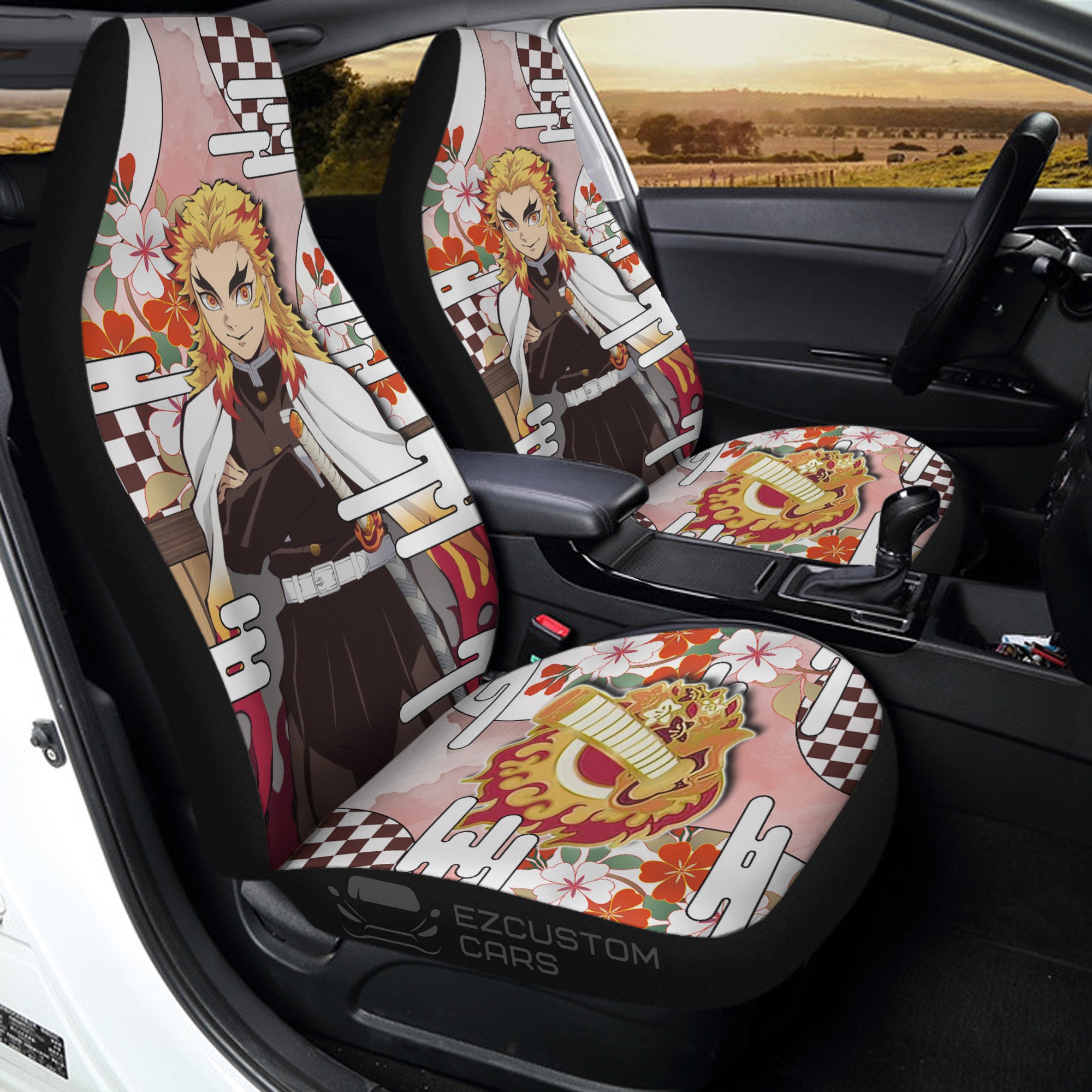 Senjuro Rengoku Car Seat Covers Custom Demon Slayer Anime Car Accessories