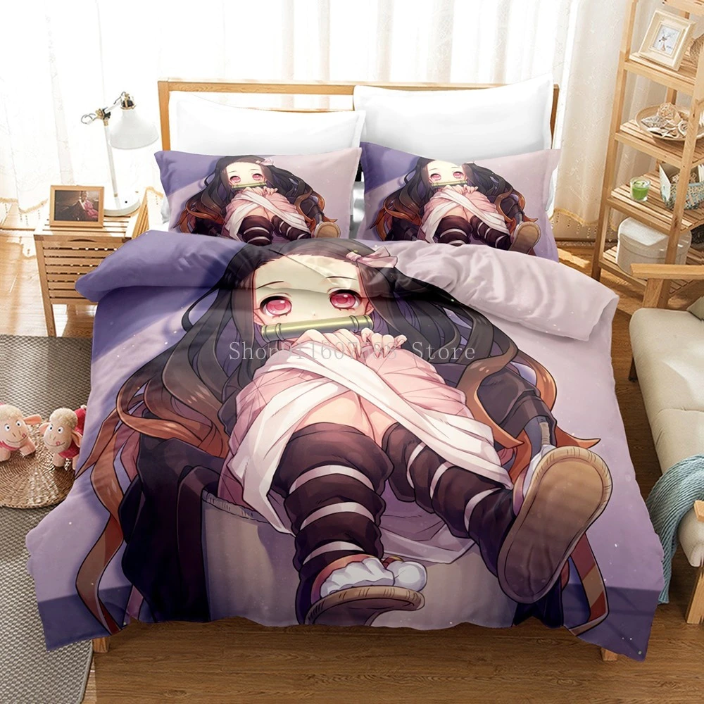 Sexy Cute Girls Kamado Nezuko Bedding Set Anime Demon Slayer 3D Printed Duvet Covers Bedclothes Bed Linen Decor Home