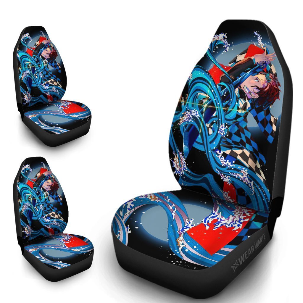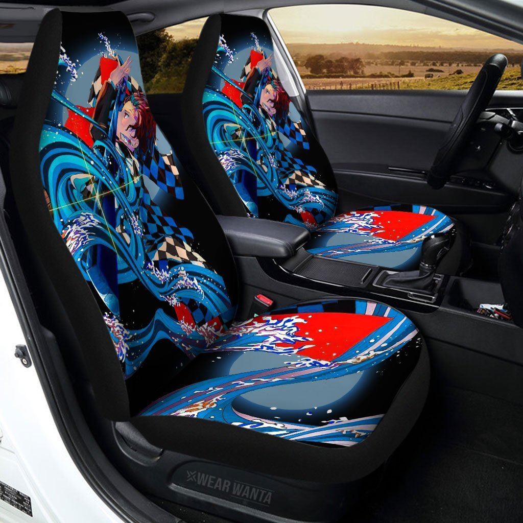 Tanjiro Car Seat Covers Water Breathing Demon Slayer Anime Car Accessories