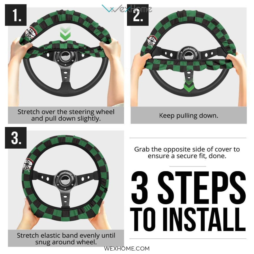 Tanjiro Kamado Steering Wheel Cover Demon Slayers Anime Car Accessories