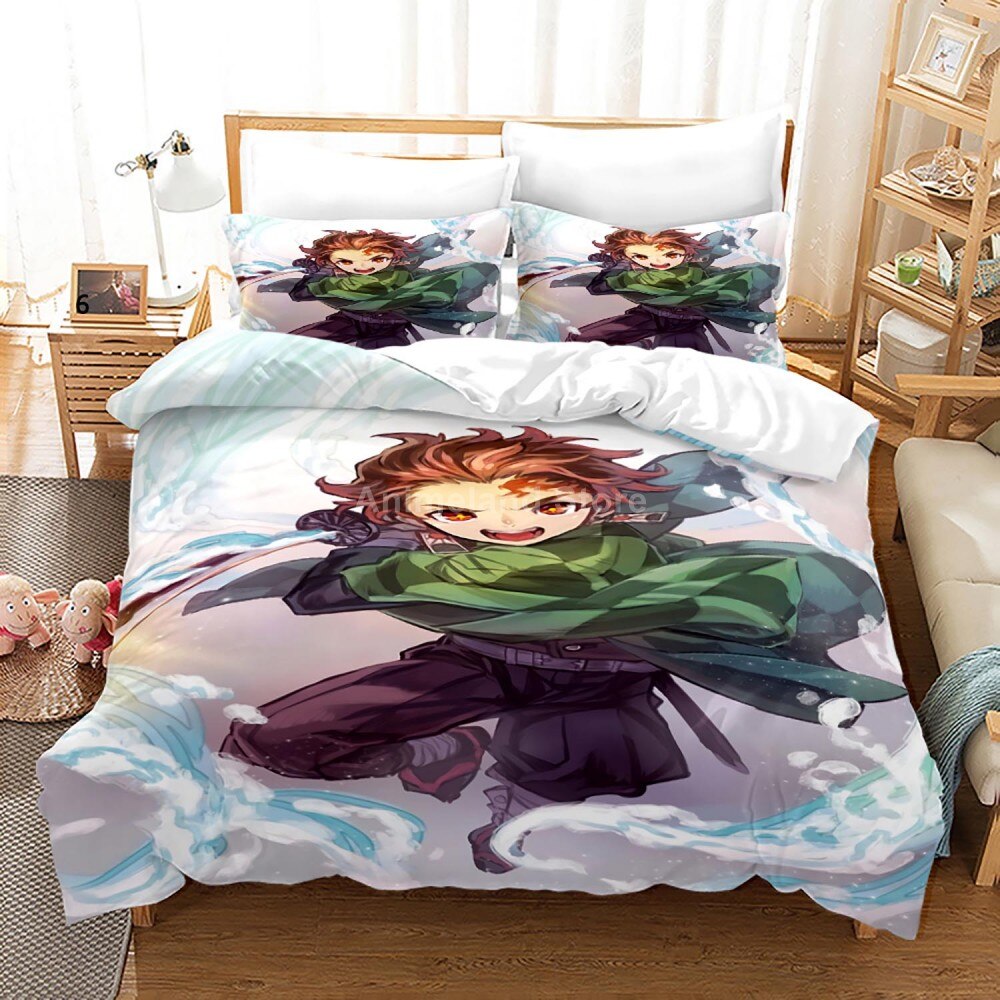 Tanjirou Kamado Bedding Set 3D Anime Duvet Covers Pillowcases Bedclothes Cartoon Queen King Size Demon Slayer