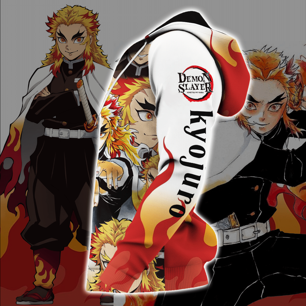 Unifinz Demon Slayer Hoodie Rengoku Kyojuro Fire Kimetsu No Yaiba Logo White Zip Hoodie Demon Slayer Apparel 2022