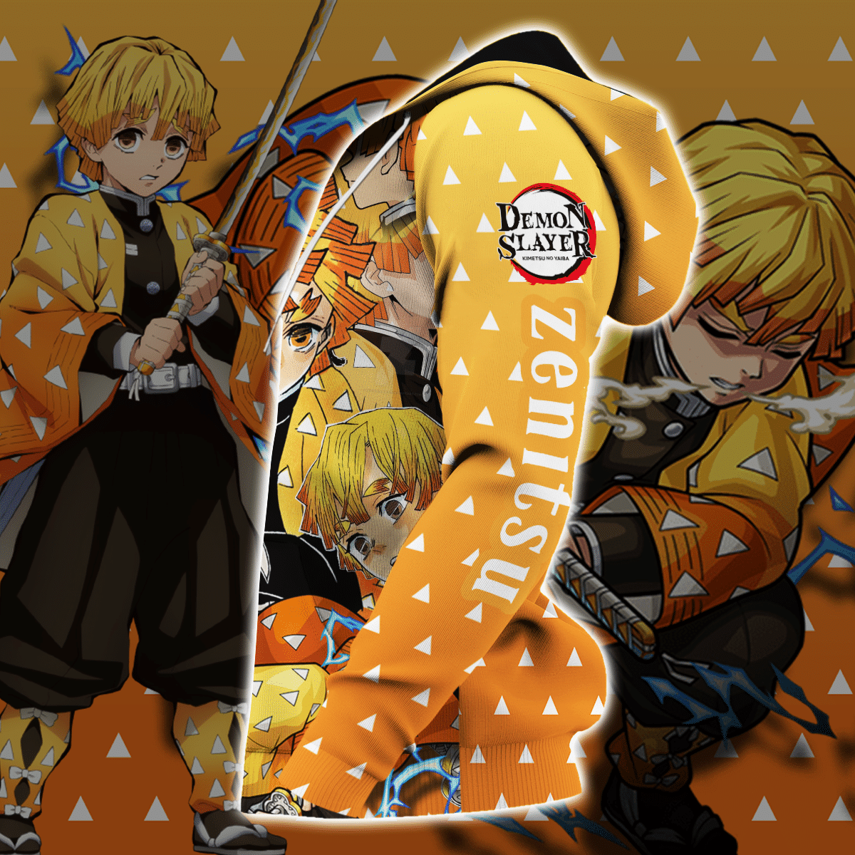 Unifinz Demon Slayer Hoodie Zenitsu Agatsuma Yellow Kimetsu No Yaiba Zip Hoodie Demon Slayer Apparel 2022